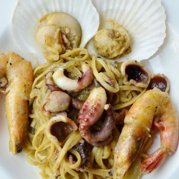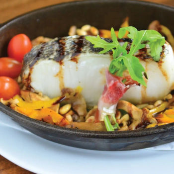 Wine, Anchovy Caesar Salad with Bacon and Jam, Black Scallop Pasta, Black Truffle Cod, Mushroom Pizza, Apple Cinnamon Chill Cheese Cake, Chocolate Lava Cake with Ice Cream, Black Braised Egg, Coffee