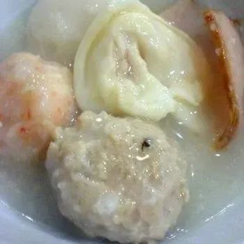 Fried wantan, Porridge steamboat, meat balls, dumplings