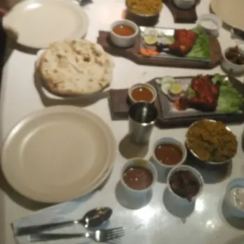Salad, Tandoori chicken, Garlic naan, Butter masala chicken, Briyani rice, Chicken Rose, Fish curry, Papadam, Fried Ladies Fingers, Prawns, Chicken, Veggies, White rice, Garlic Naan, Strawberry...