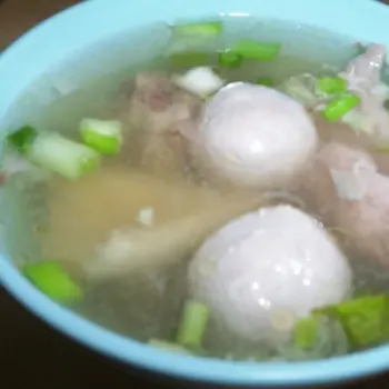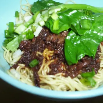 Dry noodles with minced pork with a bowl of beef tripes and beef balls (4.70)
