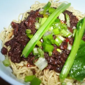 kyspeaks.comDry noodles with minced pork with a bowl of beef tripes and beef balls